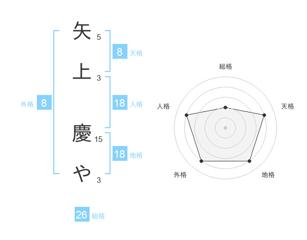 矢上 慶やさんを姓名の画数から五運を鑑定