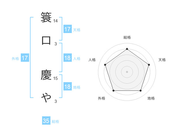 簑口 慶やさんの天格は17画の4点!