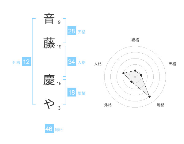 音藤 慶やさんの総格は46画の1点!