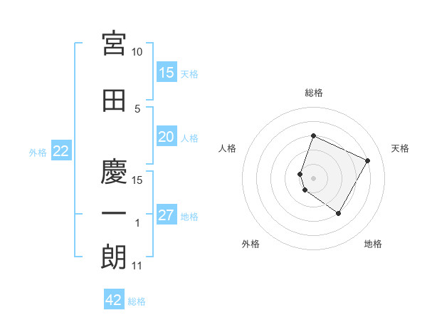 宮田 慶一朗さんの総格は42画の3点!