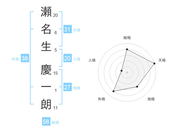 瀬名生 慶一朗さんの総格は58画の4点!