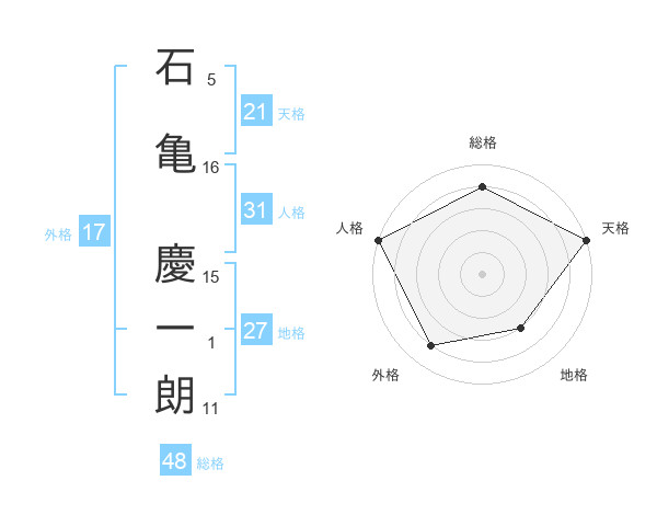 石亀 慶一朗さんを姓名の画数から五運を鑑定