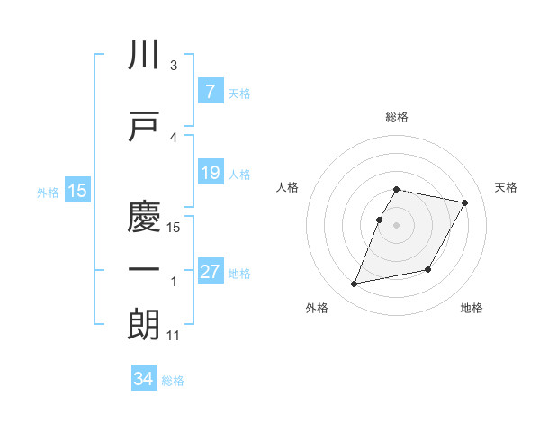 川戸 慶一朗さんの総格は34画の2点!