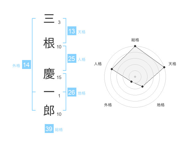 三根 慶一郎さんを姓名の画数から五運を鑑定