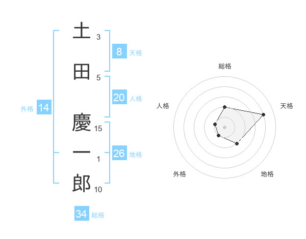 土田 慶一郎さんを姓名の画数から五運を鑑定