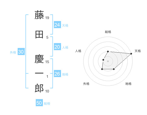 藤田 慶一郎さんを姓名の画数から五運を鑑定