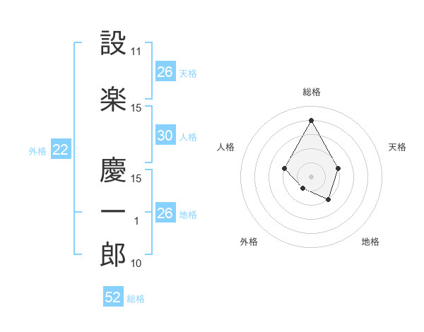設楽 慶一郎さんを姓名の画数から五運を鑑定