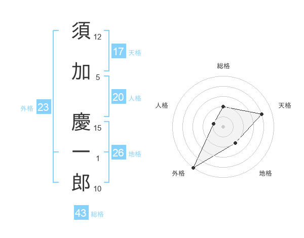 須加 慶一郎さんの総格は43画の2点