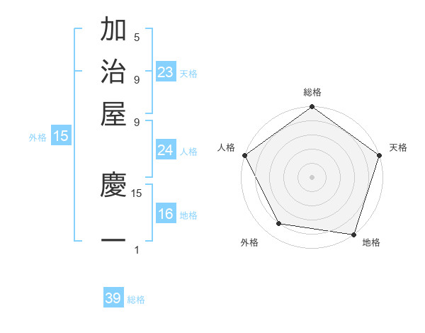 加治屋 慶一さんを姓名の画数から五運を鑑定