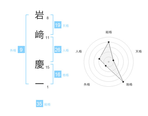 岩﨑 慶一さんの総格は35画の4点!
