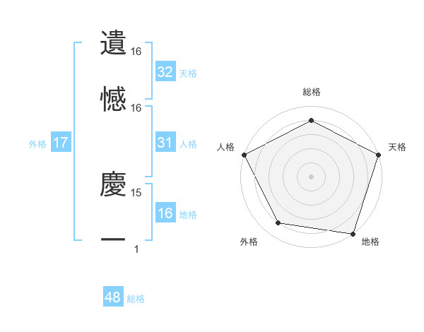 遺憾 慶一さんの地格は16画の5点!