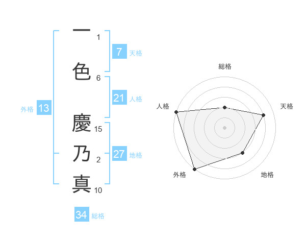 一色 慶乃真さんを姓名の画数から五運を鑑定