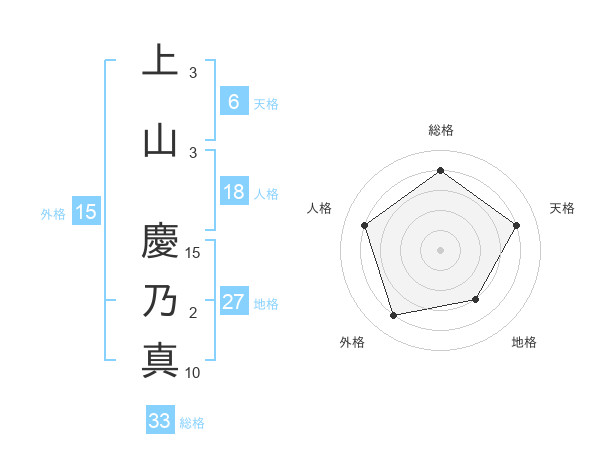 上山 慶乃真さんの総格は33画の4点!