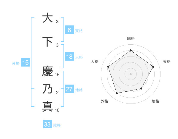 大下 慶乃真さんの総格は33画の4点!