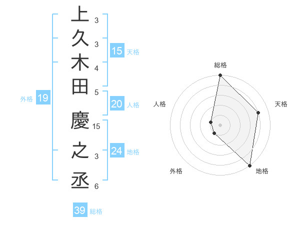 上久木田 慶之丞さんの総格は39画の5点!