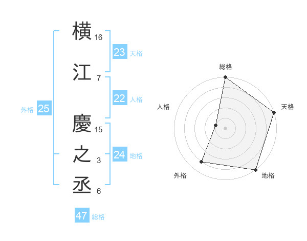 横江 慶之丞さんの総格は47画の5点!