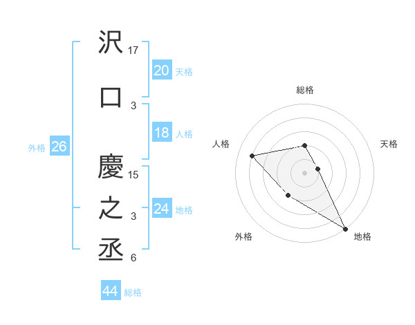 沢口 慶之丞さんの外格は26画の2点!