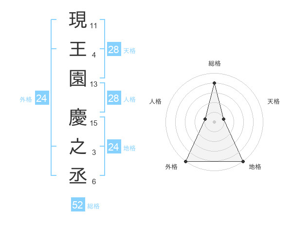 現王園 慶之丞さんの外格は24画の5点!