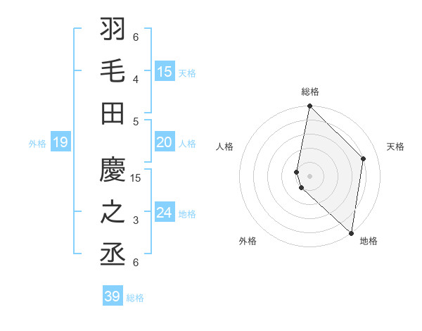 羽毛田 慶之丞さんの総格は39画の5点