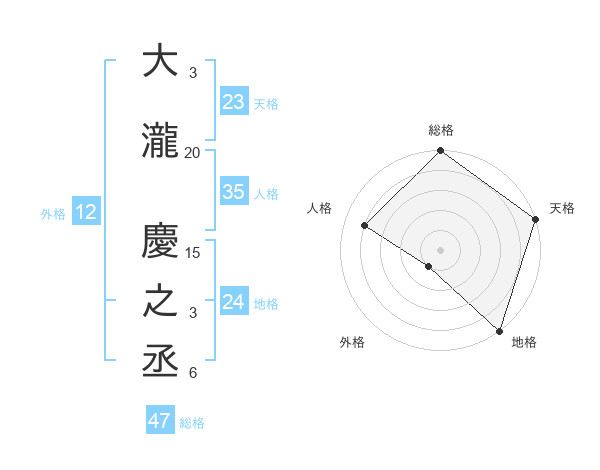 大瀧 慶之丞さんを姓名の画数から五運を鑑定