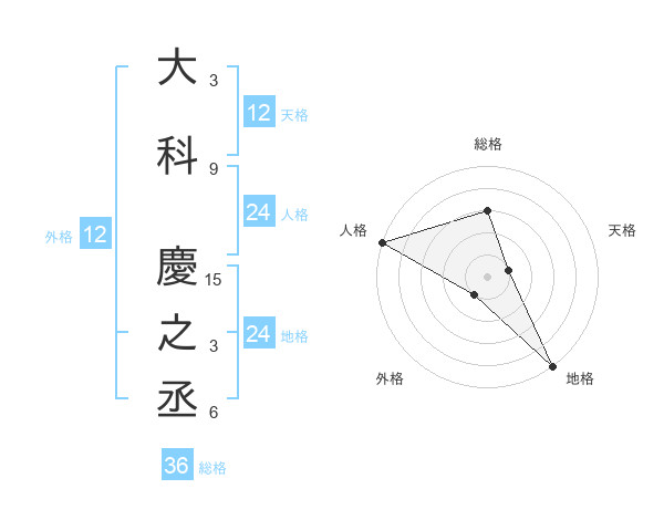 大科 慶之丞さんを姓名の画数から五運を鑑定