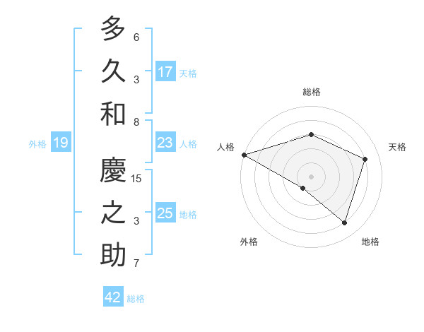 多久和 慶之助さんを姓名の画数から五運を鑑定