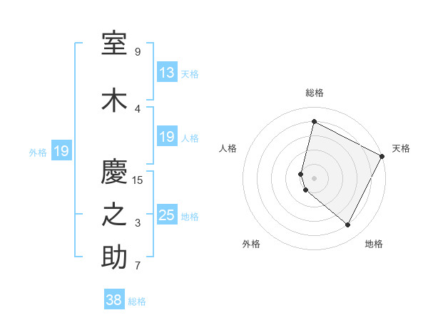 室木 慶之助さんの天格は13画の5点!