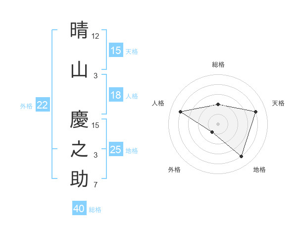 晴山 慶之助さんを姓名の画数から五運を鑑定