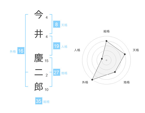 今井 慶二郎さんを姓名の画数から五運を鑑定