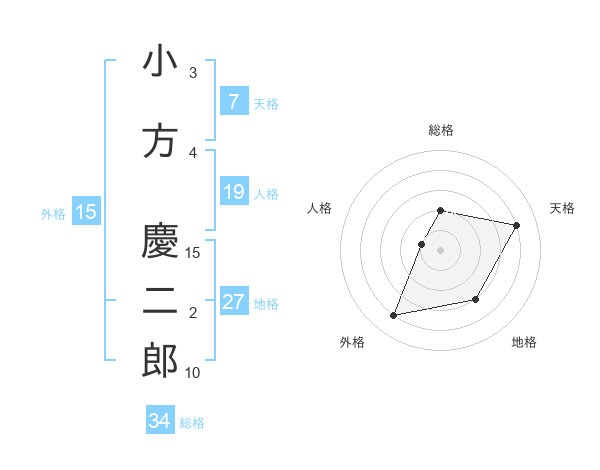 小方 慶二郎さんを姓名の画数から五運を鑑定
