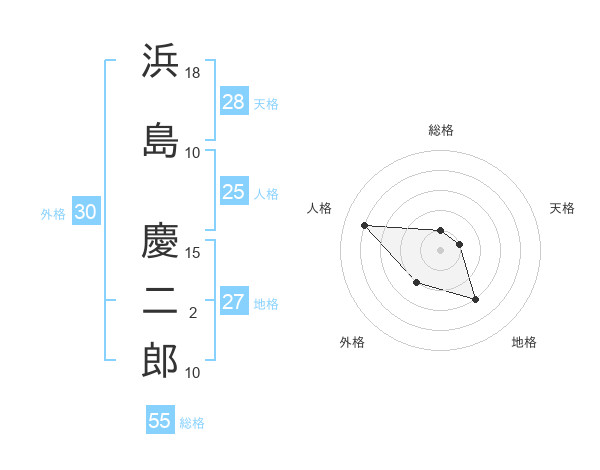 浜島 慶二郎さんを姓名の画数から五運を鑑定
