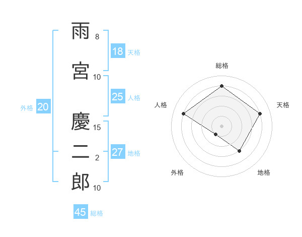 雨宮 慶二郎さんの総格は45画の4点