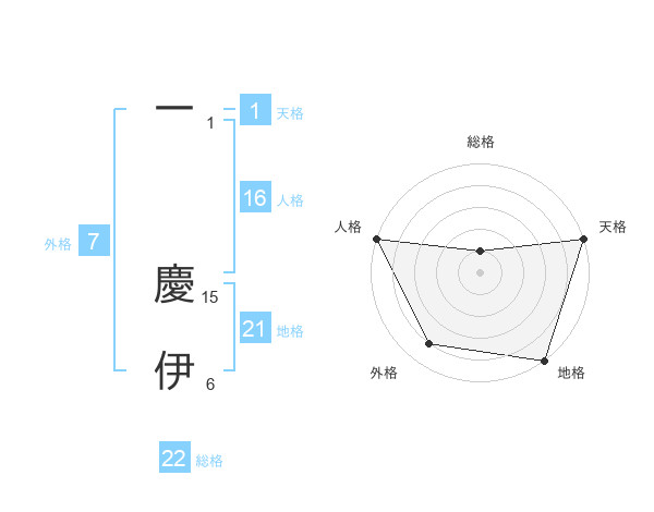 一 慶伊さんの総格は22画の1点!