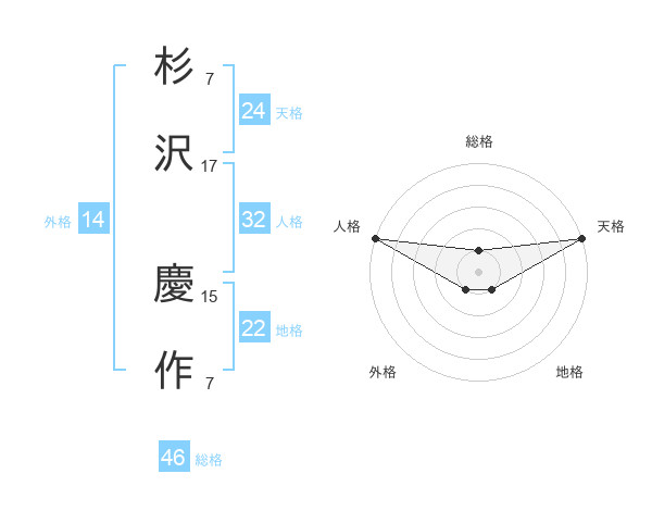 杉沢 慶作さんの天格は24画の5点!