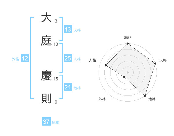 大庭 慶則さんの総格は37画の5点!