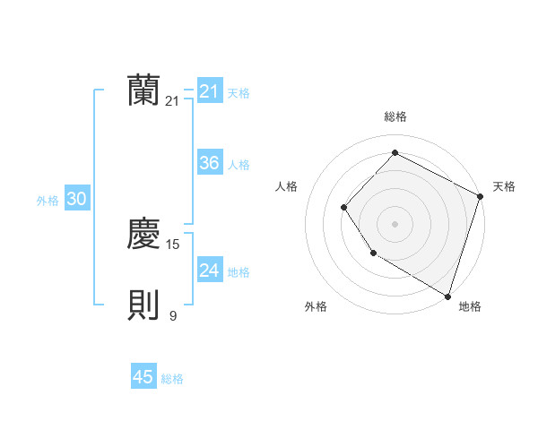 蘭 慶則さんの天格は21画の5点!