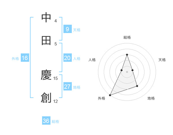 占い結果は姓名判断である以上、良い場合も悪い場合もありますが、決してお名前を誹謗中傷するものでなく、画数の自動計算によって得られたものです。また、本サイトの検索によって得られた鑑定結果で、第三者を誹謗中傷したり名誉を棄損するような行為を禁じます。