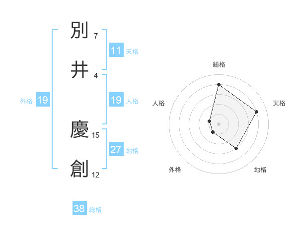 別井 慶創さんの総格は38画の4点!
