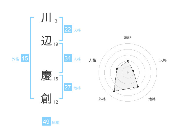 川辺 慶創さんの総格は49画の2点!