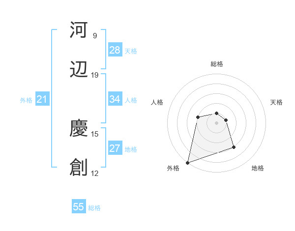 河辺 慶創さんを姓名の画数から五運を鑑定