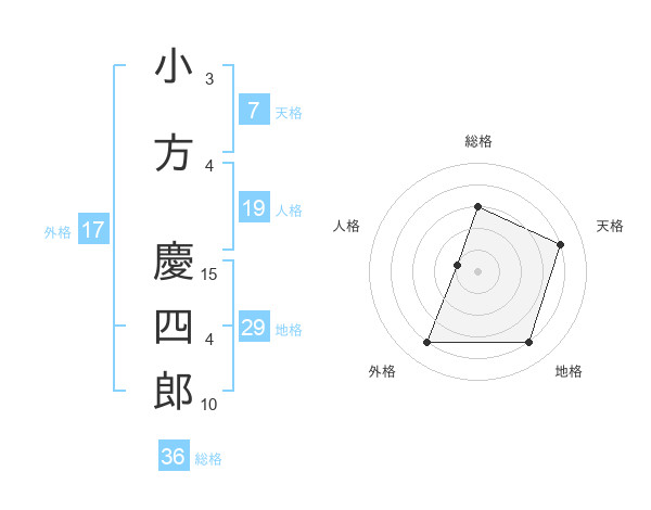 小方 慶四郎さんを姓名の画数から五運を鑑定