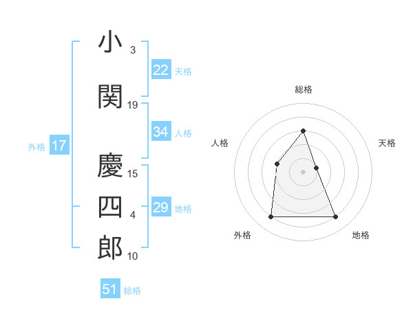 小関 慶四郎さんを姓名の画数から五運を鑑定