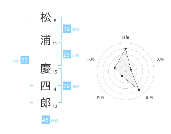 松浦 慶四郎さんの総格は48画の4点!
