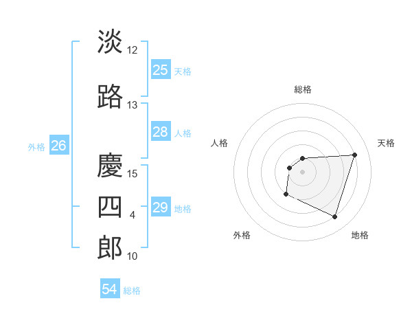 淡路 慶四郎さんの天格は25画の4点!