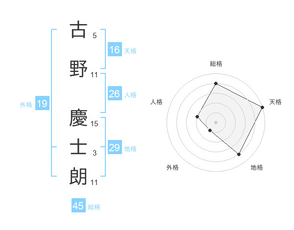古野 慶士朗さんを姓名の画数から五運を鑑定