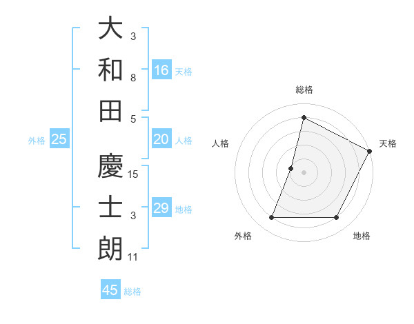 大和田 慶士朗さんを姓名の画数から五運を鑑定