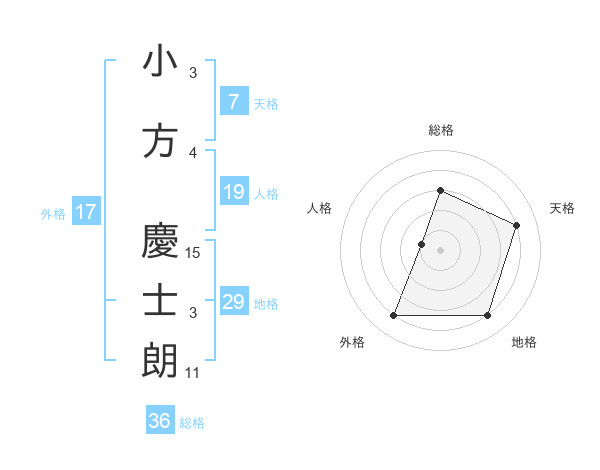 小方 慶士朗さんを姓名の画数から五運を鑑定