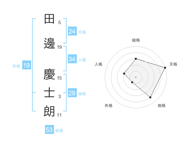 田邊 慶士朗さんの総格は53画の3点!
