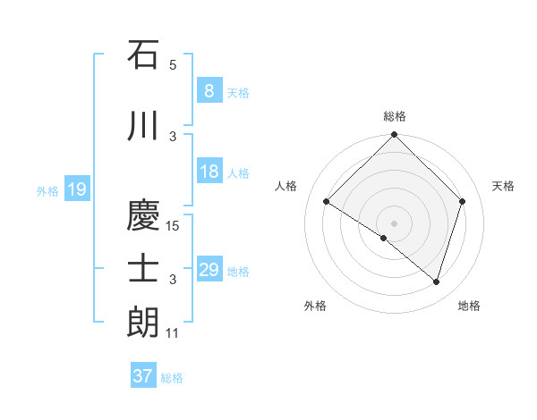 石川 慶士朗さんの総格は37画の5点!