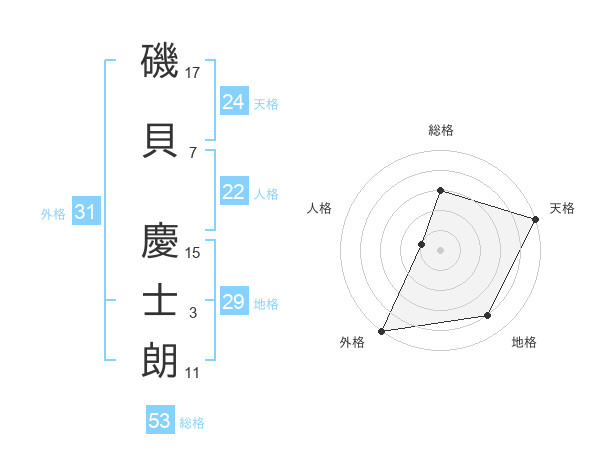 磯貝 慶士朗さんの総格は53画の3点!